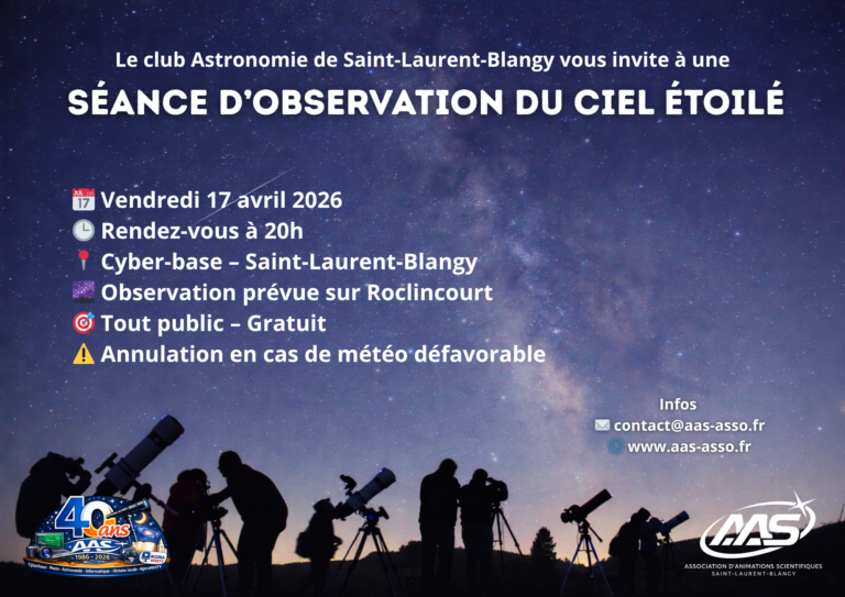 Le club d’astronomie de Saint-Laurent-Blangy vous propose une soirée exceptionnelle sous les étoiles. 📅 Date[…]